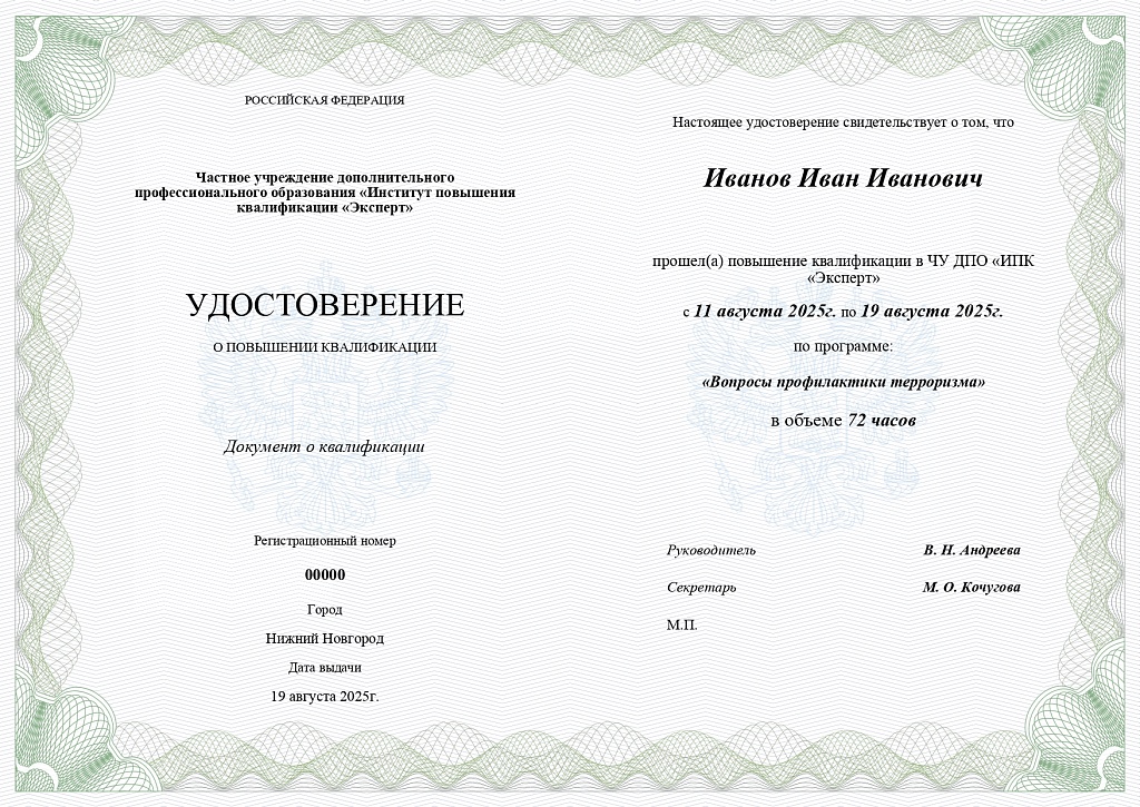 Программа обучения согласована с Национальным антитеррористическим комитетом.